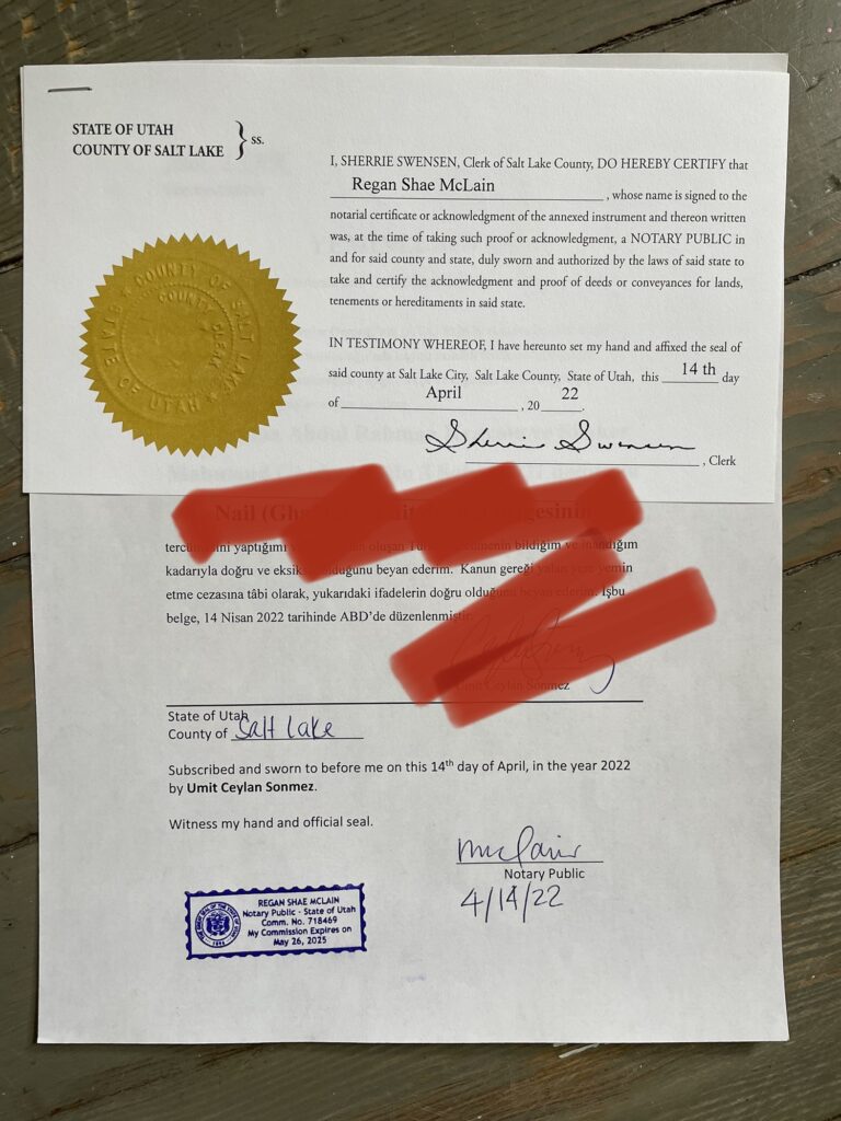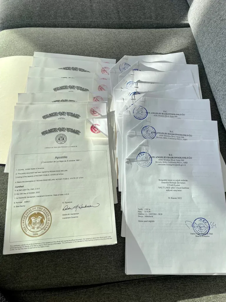• Turkish Consulate Approval – The Consulate validates the stamp from the county clerk.